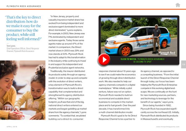 Traditionally , the insurer distributed its products solely through an agency model . In order to step up and compete with the evolution of direct writers , a key element of Plymouth Rock ’ s transformation was to build a direct capability that complemented and strengthened its agency distribution offering . “ Within our geographic footprint , you ’ ll see that a lot of the big , national direct writers entered our markets and began gobbling up market share from the agency channels ,” Lyons comments . “ To combat that , we piloted building out a direct-to-consumer