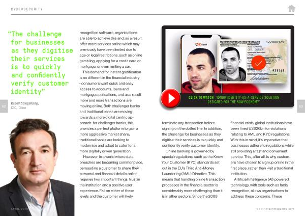 63 terminate any transaction before signing on the dotted line . In addition , the challenge for businesses as they digitise their services is to quickly and confidently verify customer identity . Online banking is governed by special regulations , such as the Know Your Customer ( KYC ) standards set out in the EU ’ s Third Anti-Money Laundering ( AML ) Directive . This means that handling online transaction processes in the financial sector is considerably more challenging than it is in other sectors . Since the 2008 financial crisis , global institutions have been fined US $ 26bn for violations relating to AML and KYC regulations . With this in mind , it ’ s imperative that businesses adhere to regulations while still providing a fast and convenient service . This , after all , is why customers have chosen to sign up online in the first place , rather than visit a traditional institution .