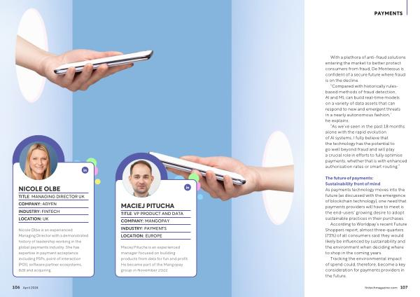Tracking the environmental impact of spend could , therefore , become a key consideration for payments providers in the future . fintechmagazine . com 107