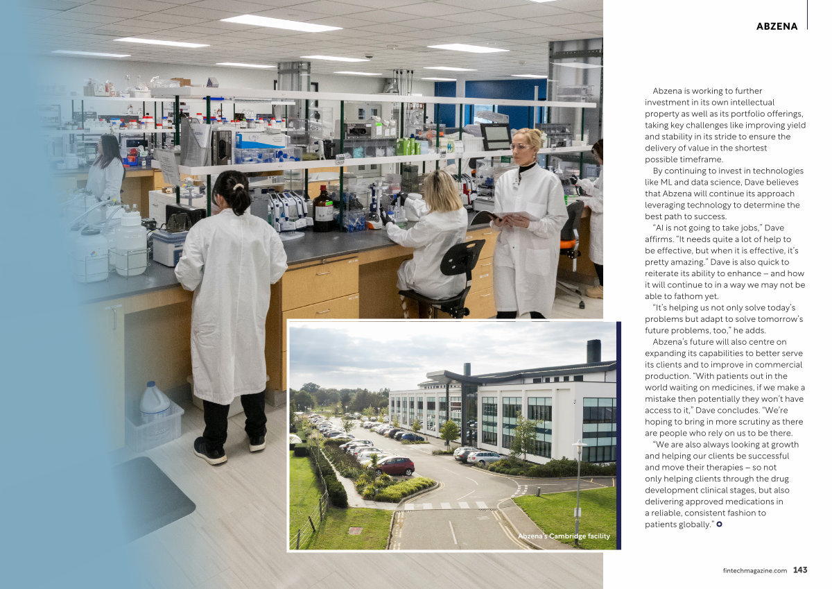 Abzena’ s future will also centre on expanding its capabilities to better serve its clients and to improve in commercial production.“ With patients out in the world waiting on medicines, if we make a mistake then potentially they won’ t have access to it,” Dave concludes.“ We’ re hoping to bring in more scrutiny as there are people who rely on us to be there.