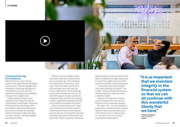 Leveraging technology for transparency Behind Flywire’ s client-facing solutions lies significant technological infrastructure. Thérèse highlights key innovations improving transparency and efficiency in cross-border payments including account validation and payment insights tools.
