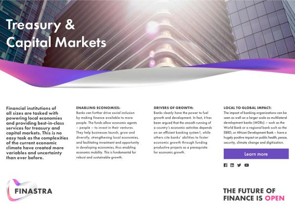 Financial institutions of all sizes are tasked with powering local economies and providing best-in-class services for treasury and capital markets . This is no easy task as the complexities of the current economic climate have created more variables and uncertainty than ever before .