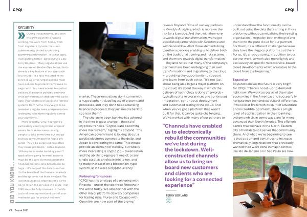 CPQi reveals Boyland . “ One of our key partners is Moody ' s Analytics , which is more on the risk for a loan side . And then , with the move towards digital transformation , we ' ve got established partnerships with Salesforce and with ServiceNow . All of those elements bring together a package enabling us to deliver both on the traditional training and risk systems and the move towards digital transformation .”