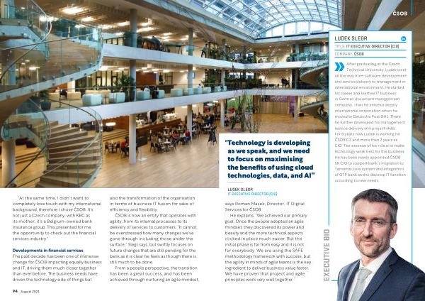 ČSOB is now an entity that operates with agility , from its internal processes to its delivery of services to customers . “ It cannot be overstressed how many changes we ' ve gone through including those under the surface ,” Slegr says , but swiftly focuses on future changes that are still pending for the bank as it is clear he feels as though there is still much to be done .