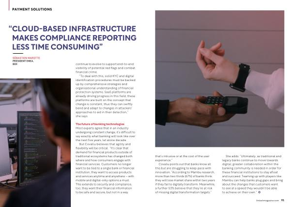 She adds : “ Ultimately , as traditional and legacy banks continue to move towards digital , greater collaboration within the banking community is needed in order for these financial institutions to stay afloat and succeed . Teaming up with players like Mambu can help banks plug gaps and bring about the changes that customers want to see at a speed they wouldn ’ t be able to achieve on their own .”