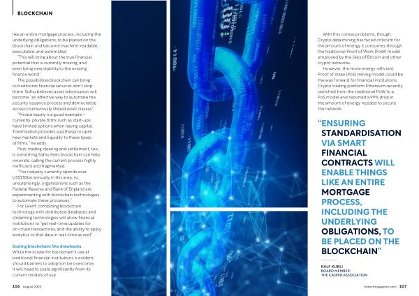 “ENSURING STANDARDISATION VIA SMART FINANCIAL CONTRACTS WILL ENABLE THINGS LIKE AN ENTIRE MORTGAGE PROCESS , INCLUDING THE UNDERLYING OBLIGATIONS , TO BE PLACED ON THE BLOCKCHAIN ”