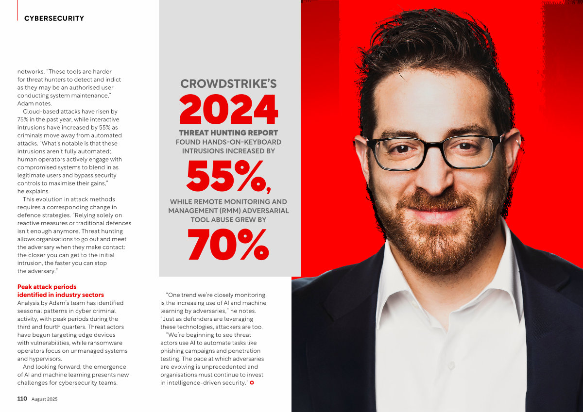 Cloud-based attacks have risen by 75 % in the past year, while interactive intrusions have increased by 55 % as criminals move away from automated attacks.“ What’ s notable is that these intrusions aren’ t fully automated; human operators actively engage with compromised systems to blend in as legitimate users and bypass security controls to maximise their gains,” he explains.