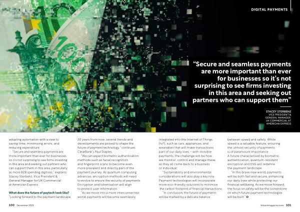 “ In this brave new world , payments will be both fast and secure , enhancing our daily lives while protecting our financial wellbeing . As we move forward , the focus on safety will be the cornerstone on which future payment technologies will be built .” fintechmagazine . com 101