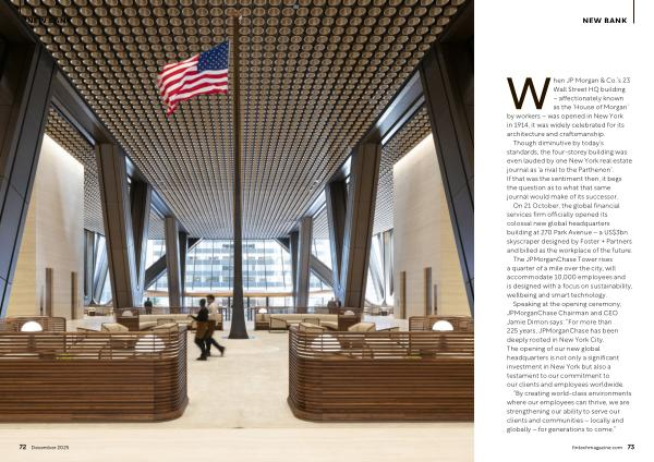 On 21 October, the global financial services firm officially opened its colossal new global headquarters building at 270 Park Avenue – a US $ 3bn skyscraper designed by Foster + Partners and billed as the workplace of the future.