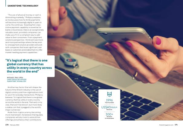 Another key factor that will shape the future of the fintech industry is the use of digital currency and how organisations look to use it for everyday transactions . Phillipou believes “ it ’ s logical that there is one global currency that has utility in every country across the world in the end . That said , in my view , that won ’ t be bitcoin , but more likely a stable coin that is pegged to the world ’ s major currencies .”