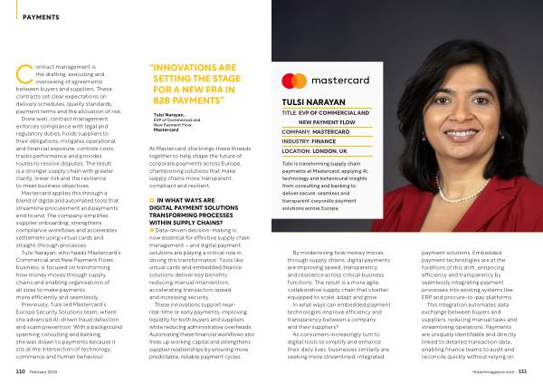 Tulsi is transforming supply chain payments at Mastercard, applying AI, technology and behavioural insights from consulting and banking to deliver secure, seamless and transparent corporate payment solutions across Europe.