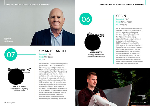 SmartSearch is a UK-focused compliance platform for AML, KYC and related screening supporting insurers and MGAs operating in regulated distribution models, particularly where they onboard corporate clients, intermediaries or higher-risk customer segments. SmartSearch provides an electronic verification platform that covers KYC, KYB, sanctions and PEP screening with ongoing monitoring, aiming to reduce onboarding friction while meeting compliance expectations. SmartSearch is most relevant for lines where financial crime controls are scrutinised, such as commercial insurance, speciality, high-net-worth cover and products tied to complex ownership structures.