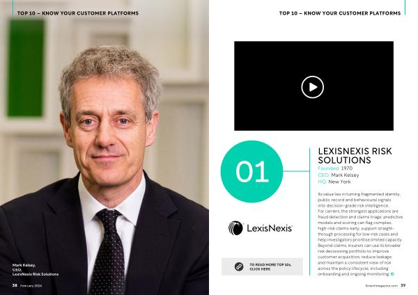 Its value lies in turning fragmented identity, public record and behavioural signals into decision-grade risk intelligence. For carriers, the strongest applications are fraud detection and claims triage: predictive models and scoring can flag complex, high-risk claims early, support straightthrough processing for low-risk cases and help investigators prioritise limited capacity. Beyond claims, insurers can use its broader risk decisioning portfolio to improve customer acquisition, reduce leakage and maintain a consistent view of risk across the policy lifecycle, including onboarding and ongoing monitoring.