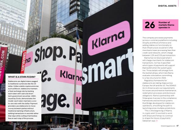“ This is the beginning of Klarna in crypto and I’ m excited to work with Stripe and Tempo to continue to shape the future of payments,” Sebastian says. fintechmagazine. com 67