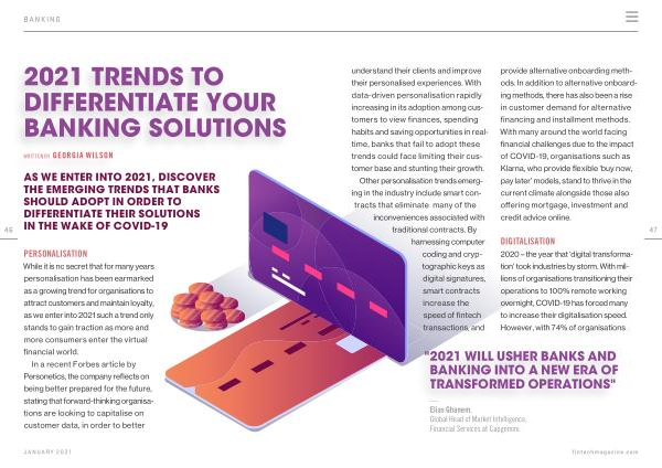 AS WE ENTER INTO 2021 , DISCOVER THE EMERGING TRENDS THAT BANKS SHOULD ADOPT IN ORDER TO DIFFERENTIATE THEIR SOLUTIONS IN THE WAKE OF COVID-19