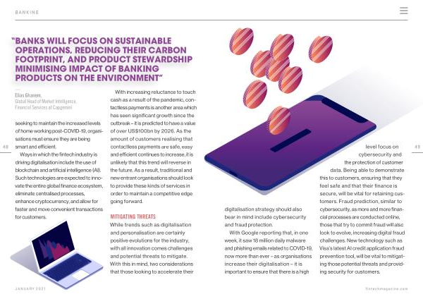 With increasing reluctance to touch cash as a result of the pandemic , contactless payments is another area which has seen significant growth since the outbreak – it is predicted to have a value of over US $ 100bn by 2026 . As the amount of customers realising that contactless payments are safe , easy and efficient continues to increase , it is unlikely that this trend will reverse in the future . As a result , traditional and new entrant organisations should look to provide these kinds of services in order to maintain a competitive edge going forward .