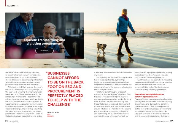 “BUSINESSES CANNOT AFFORD TO BE ON THE BACK FOOT ON ESG AND PROCUREMENT IS PERFECTLY PLACED TO HELP WITH THE CHALLENGE ”