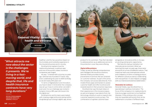 Wearables for wellness Generali Vitality , says Stockhammer , is specialising in wellness motivation . The focus of the company is to create products that encourage customers to live healthier lifestyles . If they embrace the concept , they are rewarded with points that can be redeemed in a number of different ways .