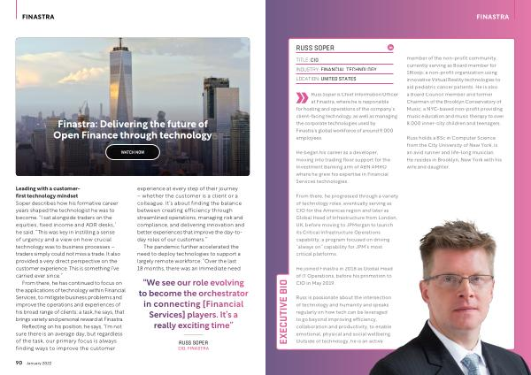 Russ Soper is Chief Information Officer at Finastra , where he is responsible for hosting and operations of the company ’ s client-facing technology , as well as managing the corporate technologies used by Finastra ’ s global workforce of around 9,000 employees .