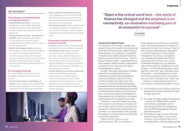 • FusionFabric . cloud enables customers to access these core systems and add new functionality via APIs ; they can build themselves or choose from our library and fintech partners . This could be to solve a specific regulatory or reporting requirement , add a new product feature or capability , or a new third party innovation .