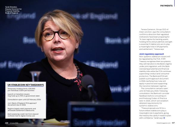 Teresa Cameron, Group CEO of Clear Junction, says the consultation confirms a direction that regulated institutions have been preparing for.“ A clear regime for backing assets, holding limits and prudential oversight is essential if stablecoins are to play a meaningful role in UK payments and settlement,” Teresa says.