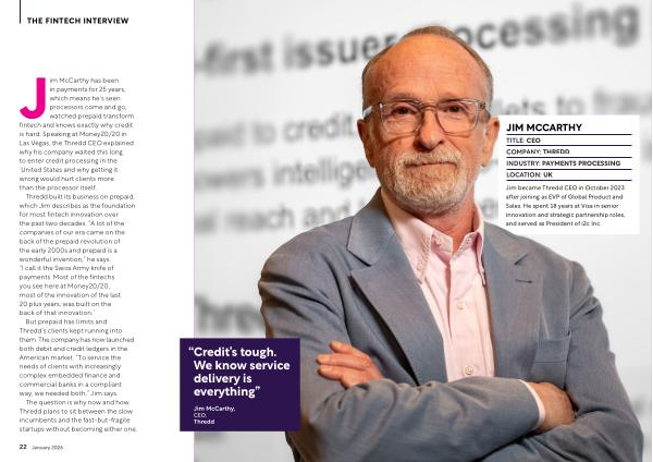 Jim McCarthy has been in payments for 25 years, which means he’ s seen processors come and go, watched prepaid transform fintech and knows exactly why credit is hard. Speaking at Money20 / 20 in Las Vegas, the Thredd CEO explained why his company waited this long to enter credit processing in the United States and why getting it wrong would hurt clients more than the processor itself.