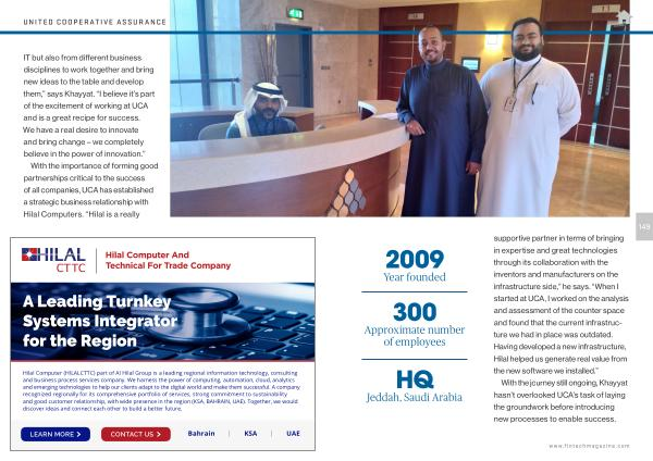 supportive partner in terms of bringing in expertise and great technologies through its collaboration with the inventors and manufacturers on the infrastructure side ,” he says . “ When I started at UCA , I worked on the analysis and assessment of the counter space and found that the current infrastructure we had in place was outdated . Having developed a new infrastructure , Hilal helped us generate real value from the new software we installed .”