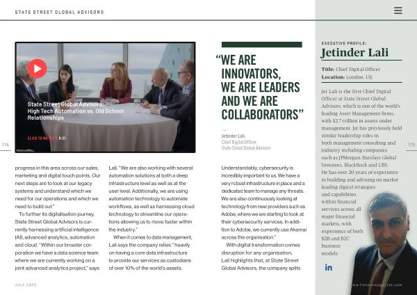 To further its digitalisation journey , State Street Global Advisors is currently harnessing artificial intelligence ( AI ), advanced analytics , automation and cloud . “ Within our broader corporation we have a data science team where we are currently working on a joint advanced analytics project ,” says