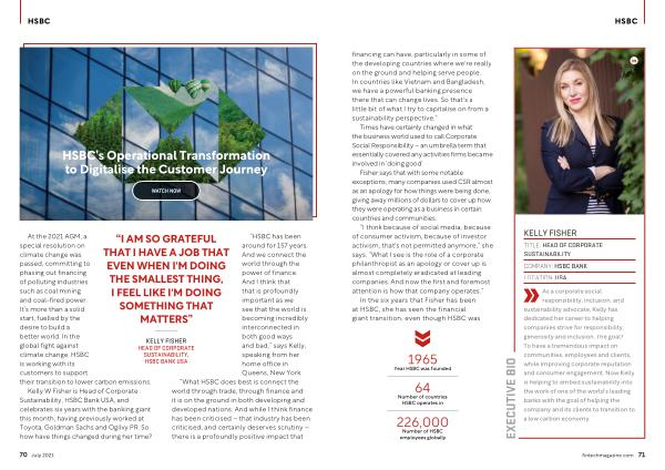 In the six years that Fisher has been at HSBC , she has seen the financial giant transition , even though HSBC was
