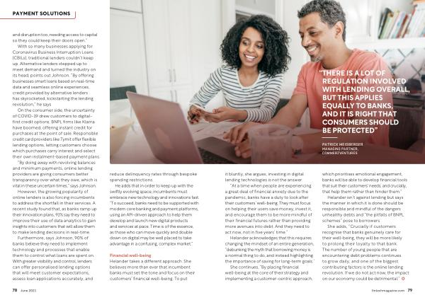 On the consumer side , the uncertainty of COVID-19 drew customers to digitalfirst credit options . BNPL firms like Klarna have boomed , offering instant credit for purchases at the point of sale . Responsible credit card providers like Tymit offer flexible lending options , letting customers choose which purchases carry interest and select their own instalment-based payment plans .