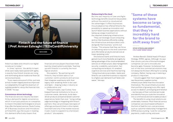 Outsourcing to the cloud But the vast majority of Lean and Agile technology benefits would not be possible without the switch to cloud and all the advantages it offers businesses . Cloud adoption has offered fintechs the possibility to speed up innovation and launch faster business applications without taking up a large investment on the required underlying infrastructure .