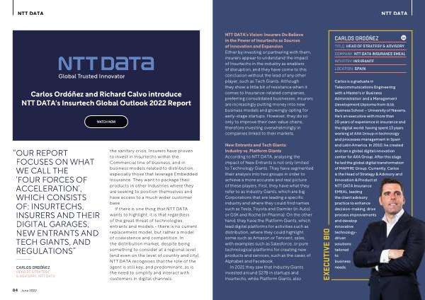 Carlos Ordóñez and Richard Calvo introduce NTT DATA ' s Insurtech Global Outlook 2022 Report