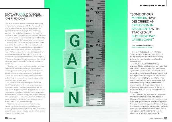 Todd Latham , CEO of technology platform Divido , argues that the sector can still do more to protect customers : “ We are pleased to see that affordability checks are now becoming standard practice for many BNPL providers . These consider the customer ' s income and any outstanding loan commitments , discovered via a stringent credit check . This is a great first step towards protecting the customer from taking out a loan they can ' t afford , or too many loans at the same time .