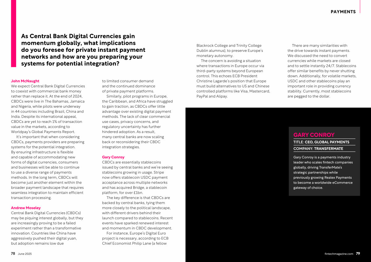 Gary Conroy is a payments industry leader who scales fintech companies globally, driving TransferMate’ s strategic partnerships while previously growing Realex Payments to become a worldwide eCommerce gateway of choice. fintechmagazine. com 79