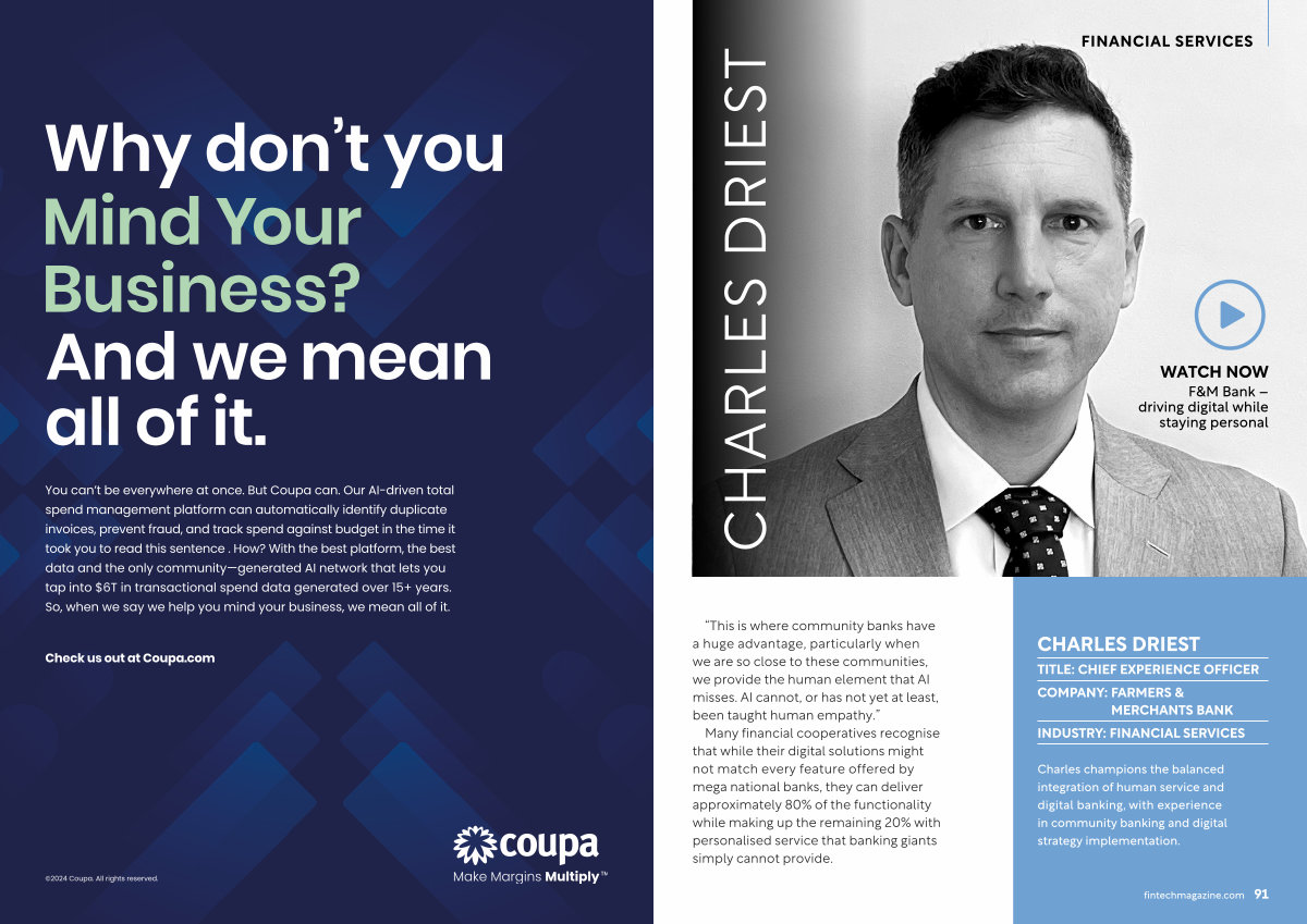 You can’ t be everywhere at once. But Coupa can. Our AI-driven total spend management platform can automatically identify duplicate invoices, prevent fraud, and track spend against budget in the time it took you to read this sentence. How? With the best platform, the best data and the only community— generated AI network that lets you tap into $ 6T in transactional spend data generated over 15 + years. So, when we say we help you mind your business, we mean all of it.