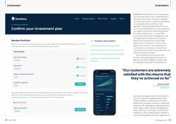 Available online , the process for signing up can be done easily from a smartphone in less than 15 minutes . The user is asked a series of questions in order for StashAway to understand them and their “ risk appetite ”. Following standard KYC ( know your customer ) practices , new customers can expect to be fully onboarded within 24 to 48 working hours . “ Using CRM ( customer relationship management ), we leverage data to understand customer behavior and present the most ideal experience or content to them at any given point in time .” The objective , he continues , is not simply to convert the customer but actually to educate them on their investment journey .