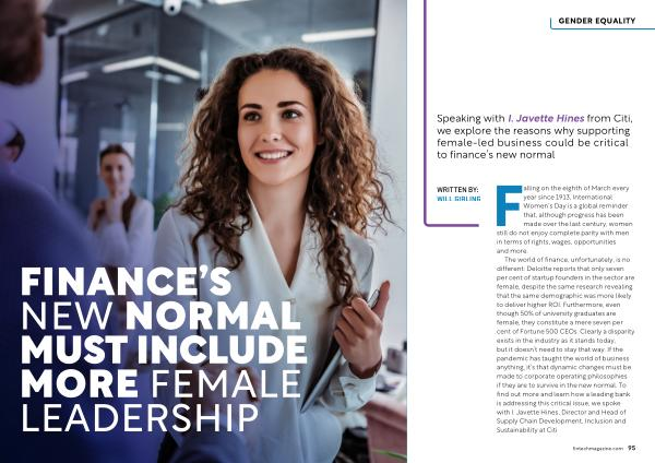 FINANCE ’ S NEW NORMAL MUST INCLUDE MORE FEMALE LEADERSHIP