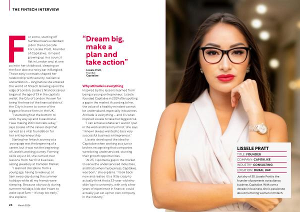 Just shy of 30, Lissele Pratt is the founder of payments consultancy business Capitalixe. With over a decade in business, she is passionate about mentoring women in fintech.