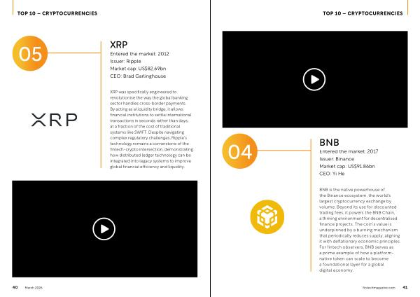 XRP was specifically engineered to revolutionise the way the global banking sector handles cross-border payments. By acting as a liquidity bridge, it allows financial institutions to settle international transactions in seconds rather than days, at a fraction of the cost of traditional systems like SWIFT. Despite navigating complex regulatory challenges, Ripple’ s technology remains a cornerstone of the fintech-crypto intersection, demonstrating how distributed ledger technology can be integrated into legacy systems to improve global financial efficiency and liquidity. 40 March 2026