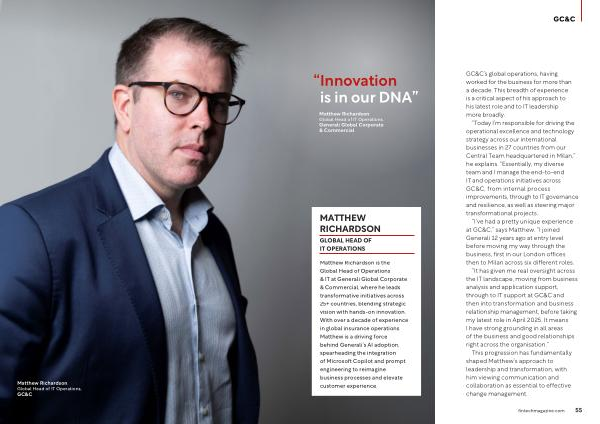 “ I’ ve had a pretty unique experience at GC & C,” says Matthew.“ I joined Generali 12 years ago at entry level before moving my way through the business, first in our London offices then to Milan across six different roles.