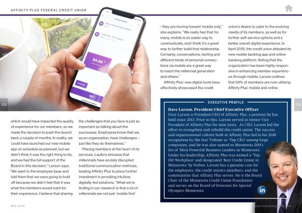 Affinity Plus ’ new digital tools have effectively showcased the credit union ’ s desire to cater to the evolving needs of its members , as well as for further self-service options and a better overall digital experience . In April 2018 , the credit union debuted its new mobile banking app and online banking platform . Noting that the organization has been highly responsive in enhancing member experiences through mobile , Larson outlines that 59 % of members are now utilizing Affinity Plus ’ mobile and online