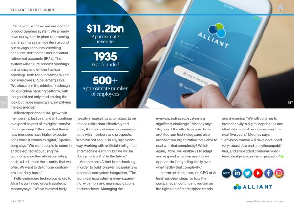 In terms of the future , the CEO of Alliant has clear ideas for how the company can continue to remain on the right side of marketplace trends and dynamics . “ We will continue to invest heavily in digital capabilities and eliminate manual processes over the next five years ,” Mooney says . “ I envision that we will have developed very robust data and analytics capabilities , and embedded consumer-centered design across the organization .”