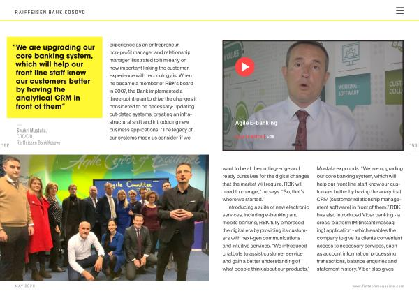 — Shukri Mustafa , COO / CIO , Raiffeissen Bank Kosovo experience as an entrepreneur , non-profit manager and relationship manager illustrated to him early on how important linking the customer experience with technology is . When he became a member of RBK ’ s board in 2007 , the Bank implemented a three-point-plan to drive the changes it considered to be necessary : updating out-dated systems , creating an infrastructural shift and introducing new business applications . “ The legacy of our systems made us consider ‘ if we