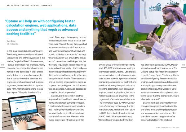 in the local Saudi Insurance industry . “ Previously , no one really considered Solidarity as one of the key players in the market ,” explains Bakri . “ However now , I believe the outlook has changed , mainly because our competitors have taken notice of the decrease in their online market shares in specific segments , this is due to the online services and platforms we have launched . In some segments , we ’ ve been able to capture a 30-40 % market share online in less than a year .” Despite the rise of the cloud , Bakri says his company has no immediate plans to move all of its services over . “ One of the key things we had to do was evaluate our infrastructure and really determine what we have and how to optimise our capacity ,” he says . “ There is a lot of talk around the cloud , and of course the cloud is important , but there are regulations that don ’ t allow us to transition there easily . I don ’ t really see much cost optimisation in moving everything to the cloud because it ’ s still a niche set up in Saudi Arabia . The cost would end up costing organisations more as opposed to hosting your own infrastructure on-premise . And it was decided to bring the cloud on-premise ”