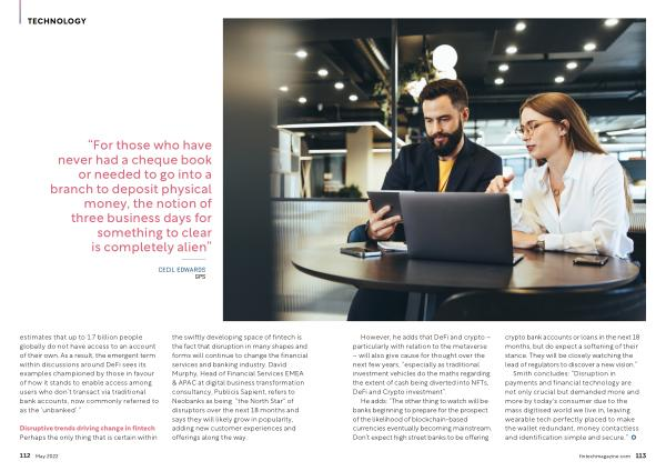 Smith concludes : “ Disruption in payments and financial technology are not only crucial but demanded more and more by today ' s consumer due to the mass digitised world we live in , leaving wearable tech perfectly placed to make the wallet redundant , money contactless and identification simple and secure .”