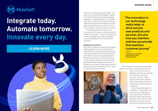 Building for the Future With the foundation in place and the digital banking platform now live , Mazzaferro , Singh and their teams are already thinking about the future , which extends beyond what Western Union is already known for . Remaining customer-centric will be key to this success , Mazzaferro says , and that goes beyond launching new products to market . It ’ s also about enhancing customer experience and how Western Union opens new lines of communication .