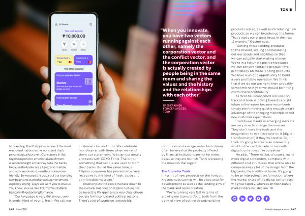 The future for Tonik In terms of new products on the horizon , Krasnov says savings will be a key area for development as well as the lending arm of the bank and asset creation .
