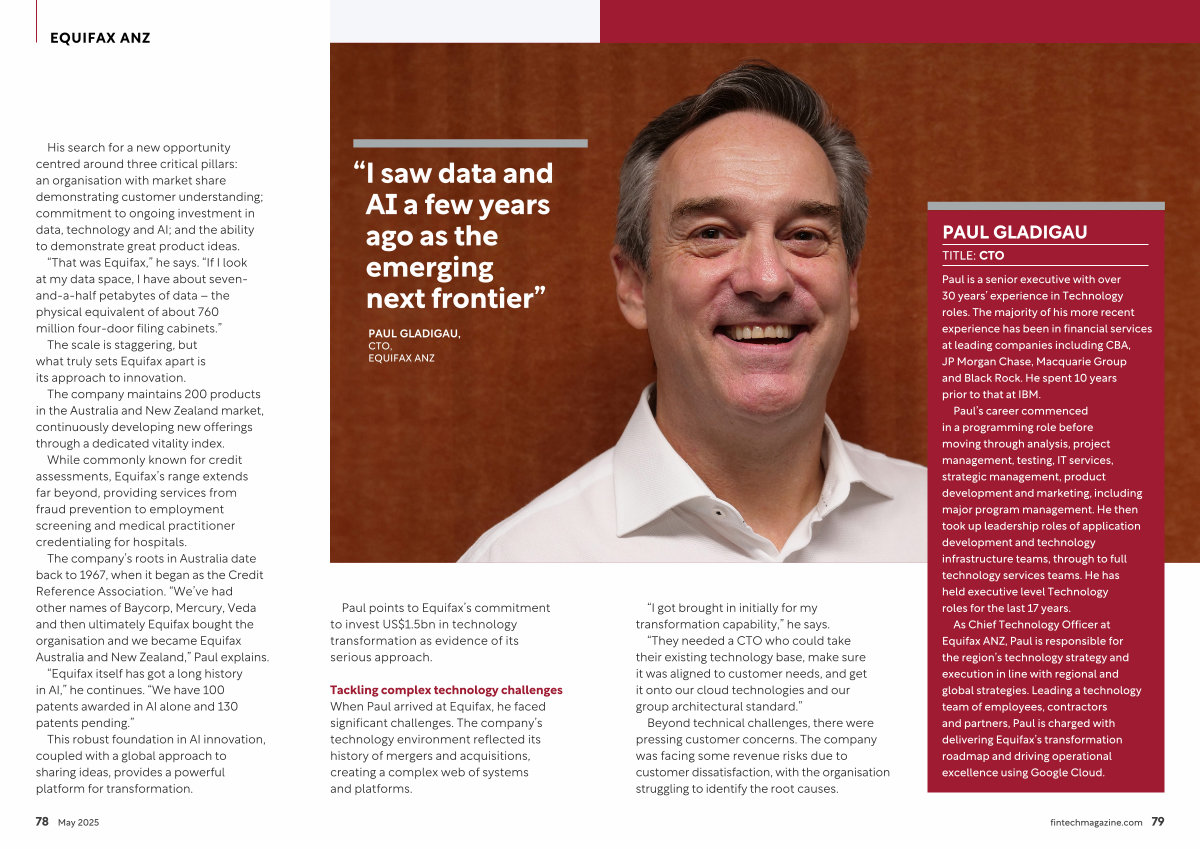 As Chief Technology Officer at Equifax ANZ, Paul is responsible for the region’ s technology strategy and execution in line with regional and global strategies. Leading a technology team of employees, contractors and partners, Paul is charged with delivering Equifax’ s transformation roadmap and driving operational excellence using Google Cloud.