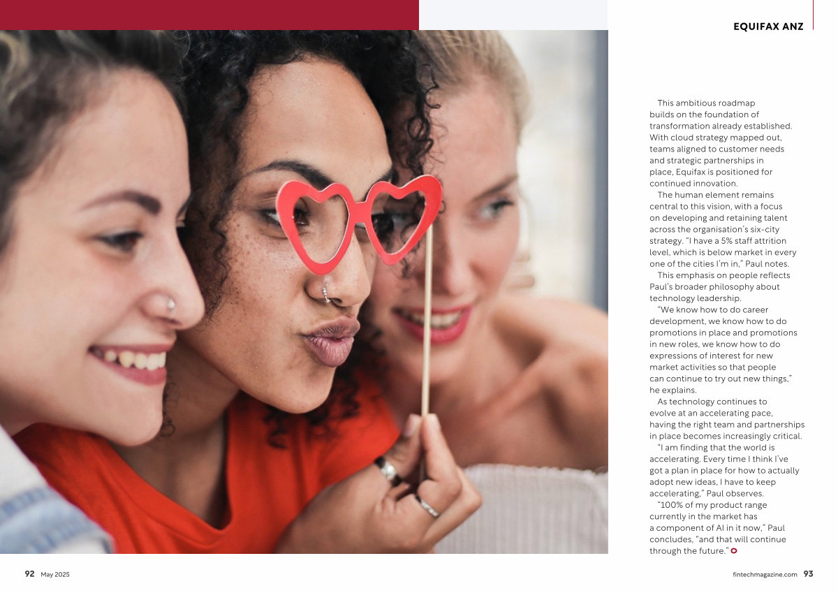 “ 100 % of my product range currently in the market has a component of AI in it now,” Paul concludes,“ and that will continue through the future.” fintechmagazine. com 93