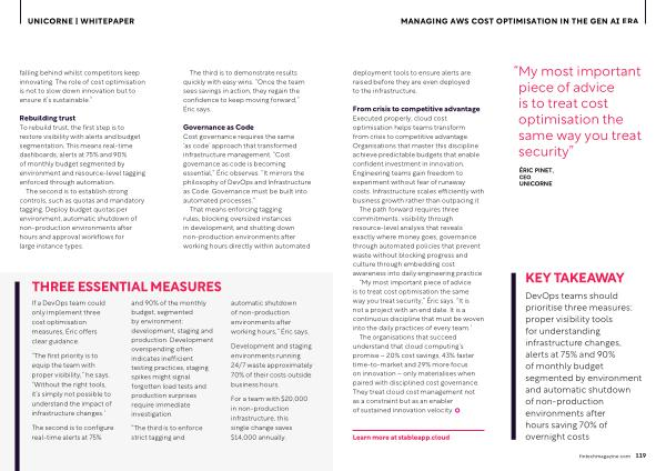 falling behind whilst competitors keep innovating. The role of cost optimisation is not to slow down innovation but to ensure it’ s sustainable.”